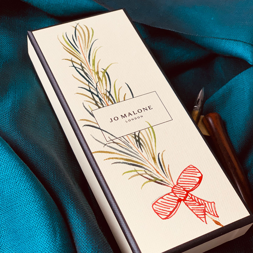 Hand-painted perfume boxes at a Holiday-themed event for Jo Malone London