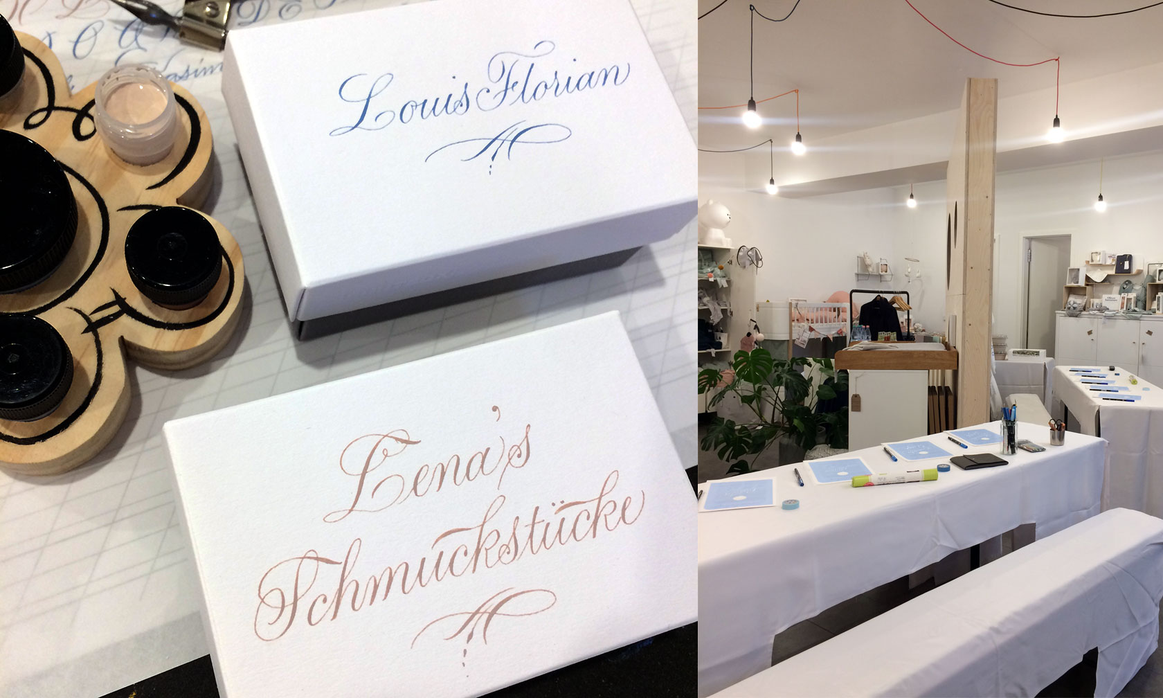 For the stroller manufacturer Joolz I held a brushlettering workshop at the Kleine Fabriek in Berlin and labeled these pretty cardboard boxes for customers.