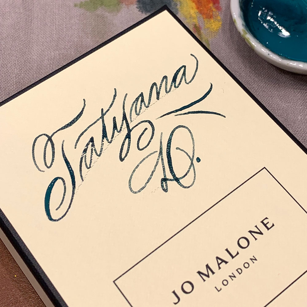 Klassische Eventkalligrafie auf feinen Karten für S.T. Dupont auf der Fashion Week in Berlin