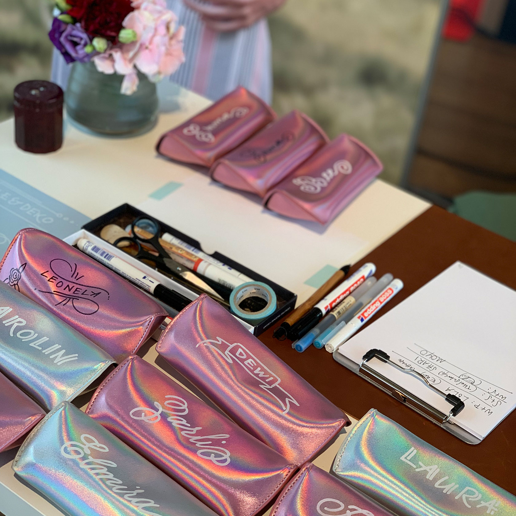 Mehrere Hundert Brillenetuis wurden von mir für Besucher:innen der InStyle im Rahmen der Fashion Week 2019 für C&A in Berlin beschriftet.