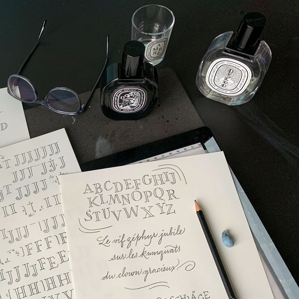 Für den Kinderwagenhersteller Joolz hielt ich in der Kleinen Fabriek in Berlin einen Brushlettering-Workshop und beschriftete diese hübschen Pappschachteln für Kund:innen.