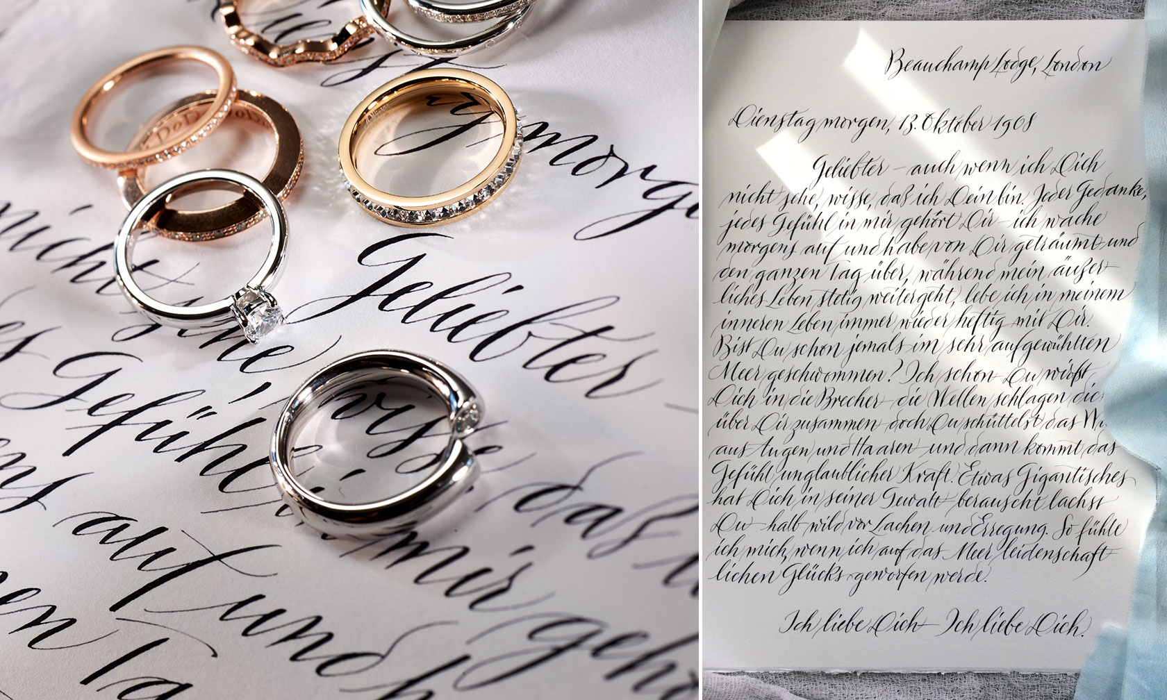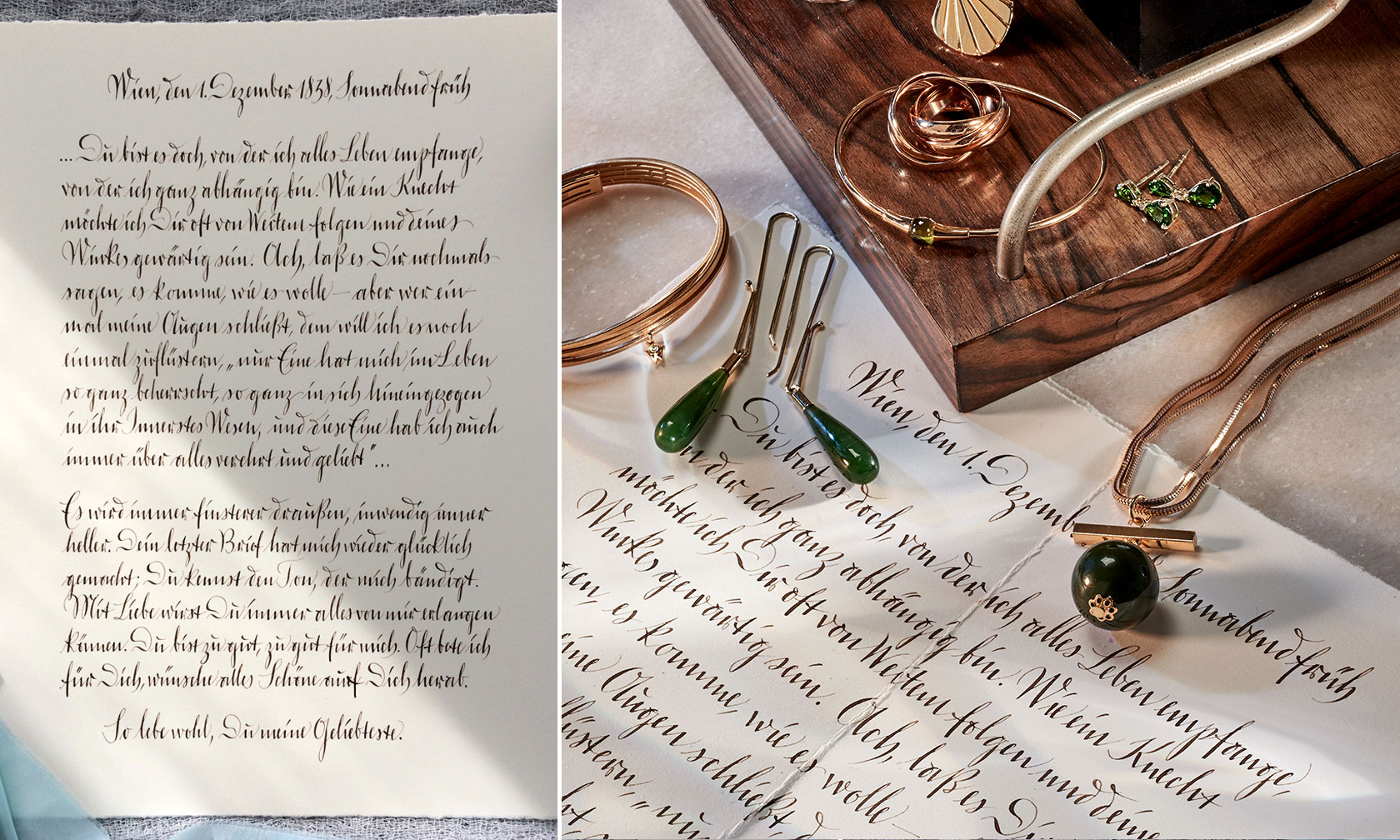 Liebesbriefe historischer Persönlichkeiten für eine Schmuck-Strecke in der Brigitte :: Gestaltung und Kreativdirektion: Brigitte, © für die großen Abbildungen: Boris Kumicak