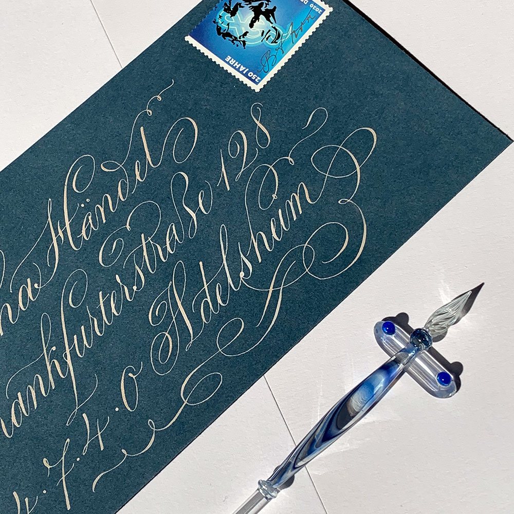 Umschlag-Kalligrafie fĂĽr eine Danke-Aussendung