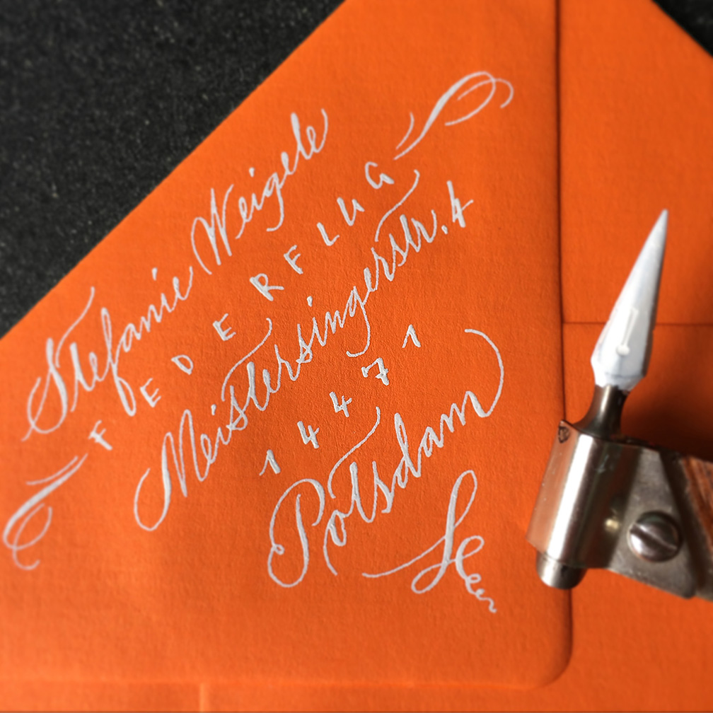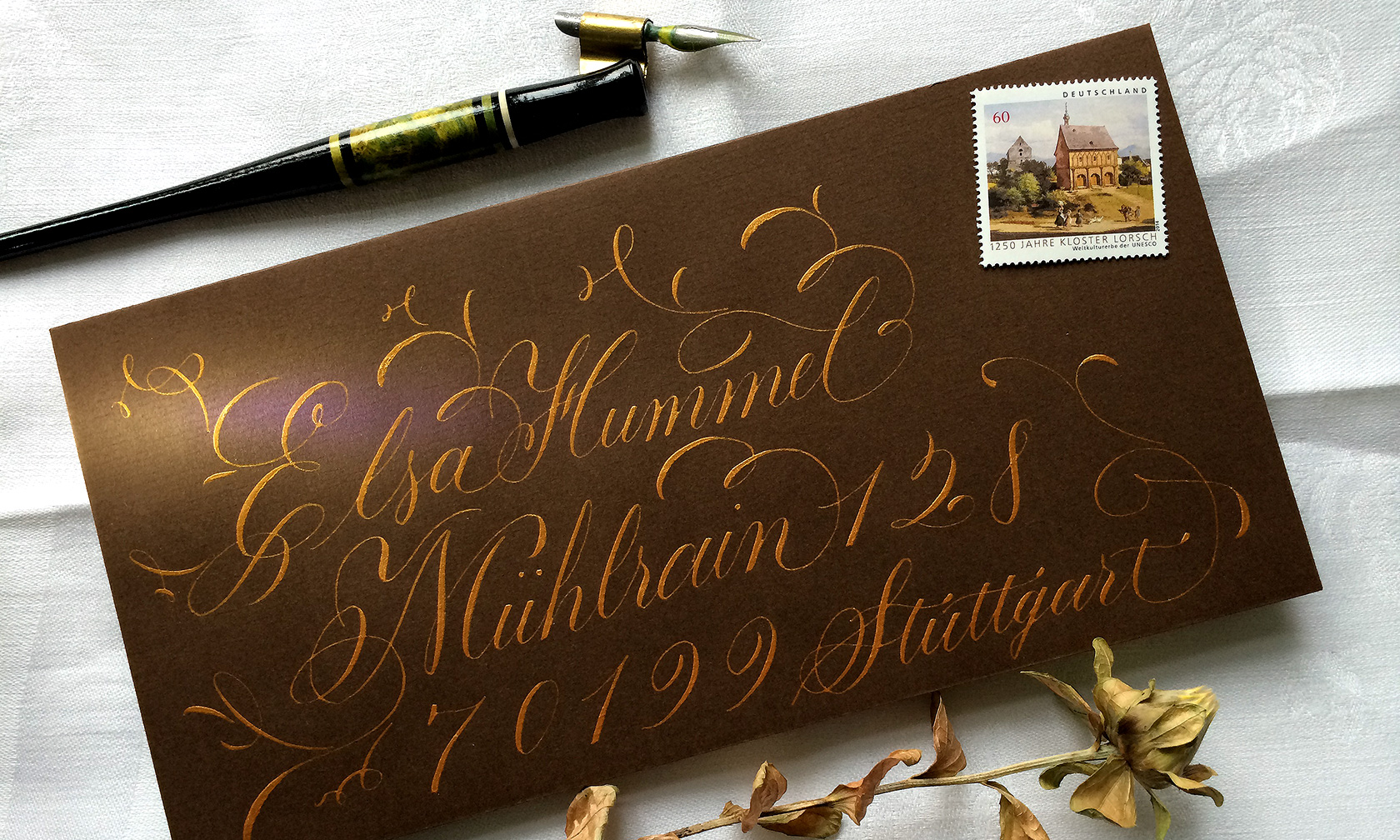 Hier erkläre ich den Ablauf einer Bestellung für Kalligrafie-Umschläge. Gern können Sie mir auch eine Mail schicken:
