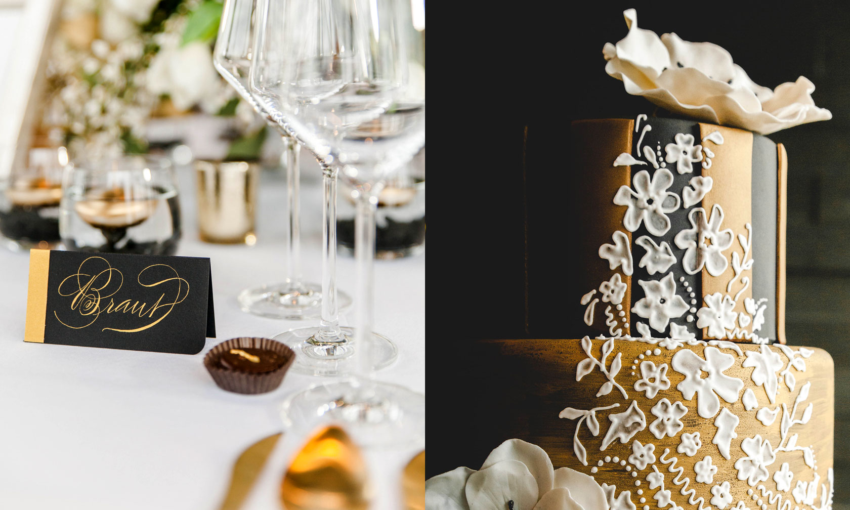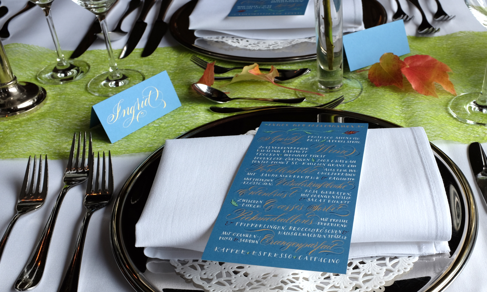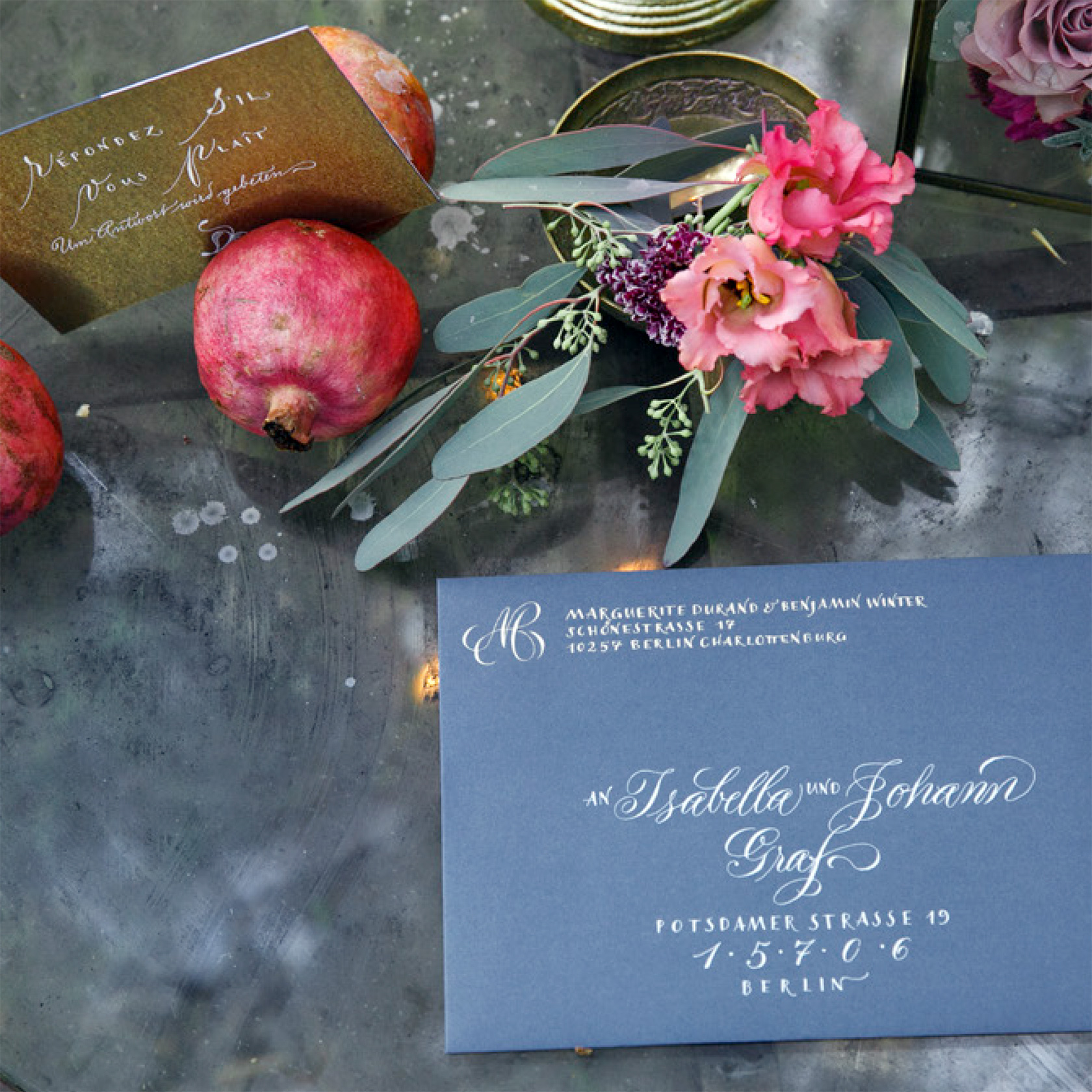 Ich gestalte Ihre Fest-Papeterie entweder als Gesamtpaket von der Beratung bis hin zur drucktechnischen Umsetzung, oder nur in einzelnen Bausteinen wie zum Beispiel mit auf Ihre Einladung und Ihr Hochzeitsthema abgestimmten Tischkarten oder Gastgeschenkanhängern – gern arbeite ich mit Ihrem Hochzeitsplaner zusammen. Auch die in Deutschland noch eher unübliche professionelle Beschriftung der Umschläge, die in Amerika zu jeder stilgerechten Hochzeit gehört, kann ich übernehmen.